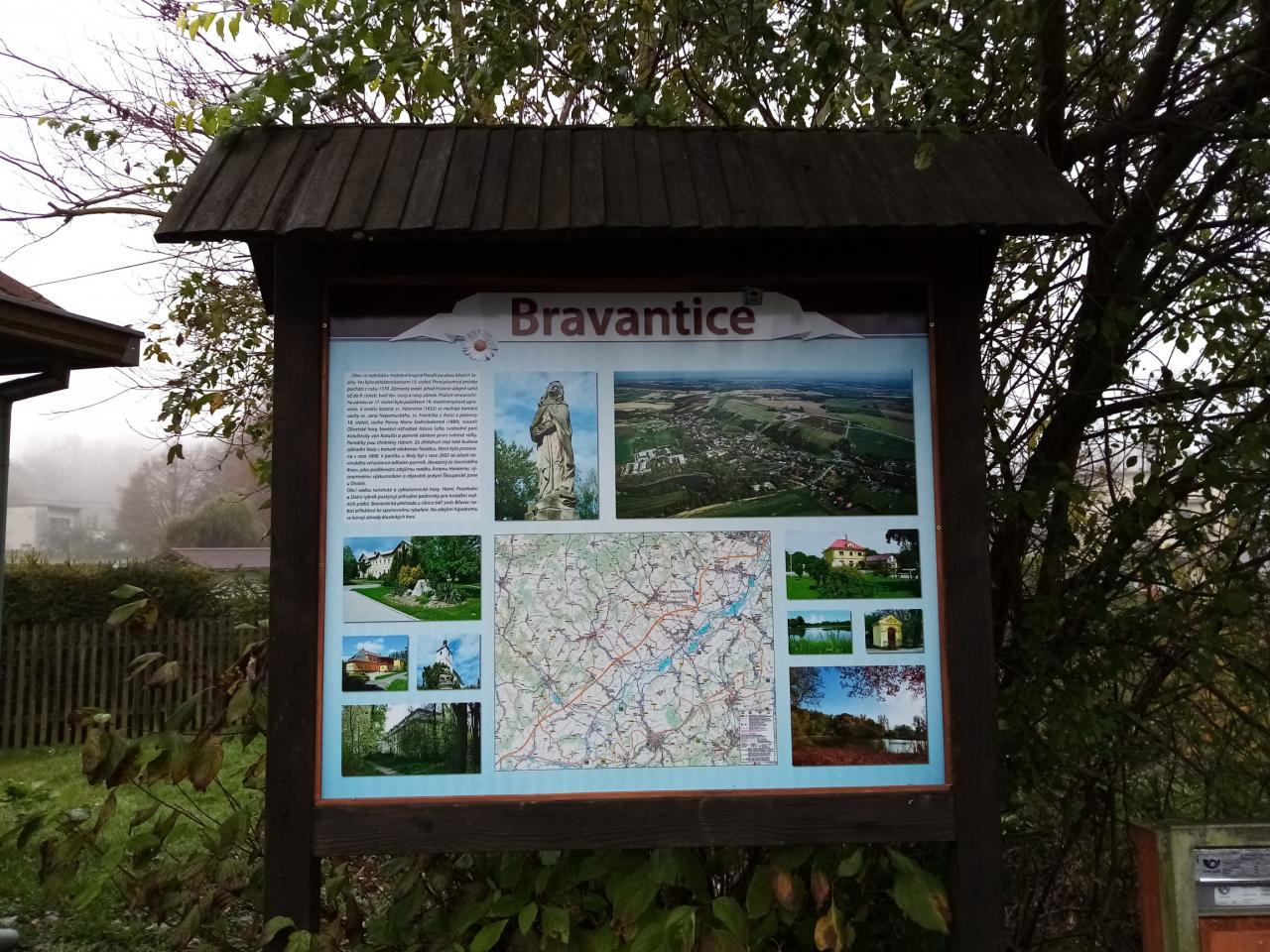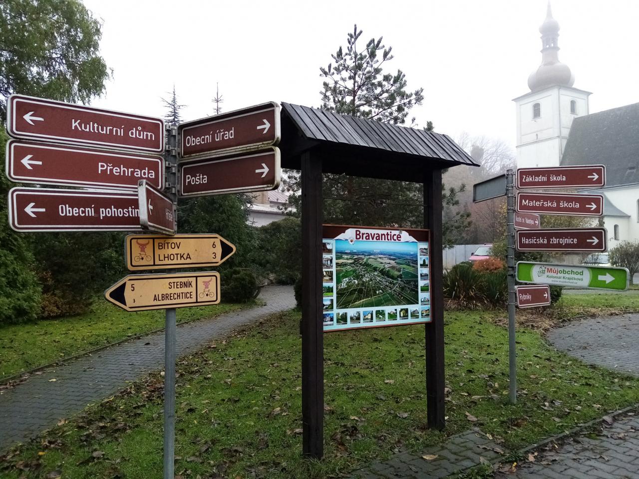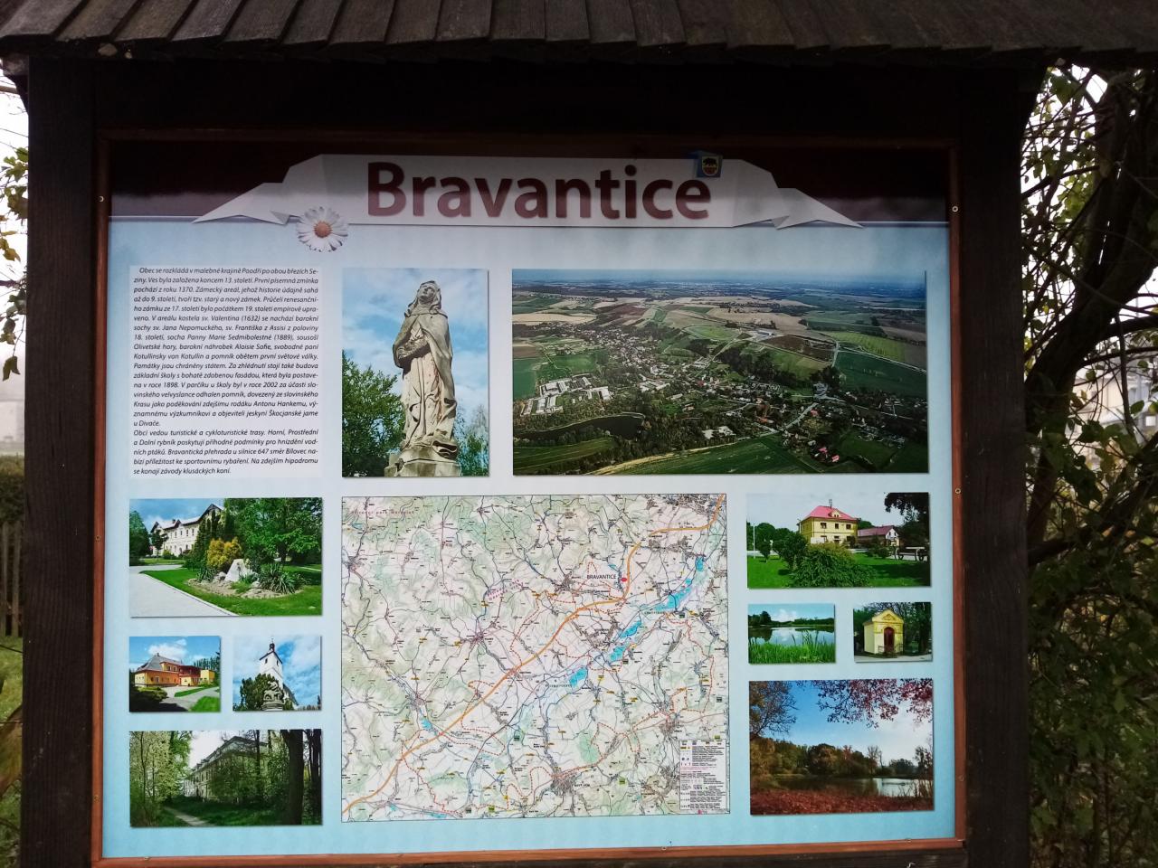 Jednu tabuli můžete najít v parčíku před obecním úřadem a druhou vedle zastávky na horním konci Bravantic.