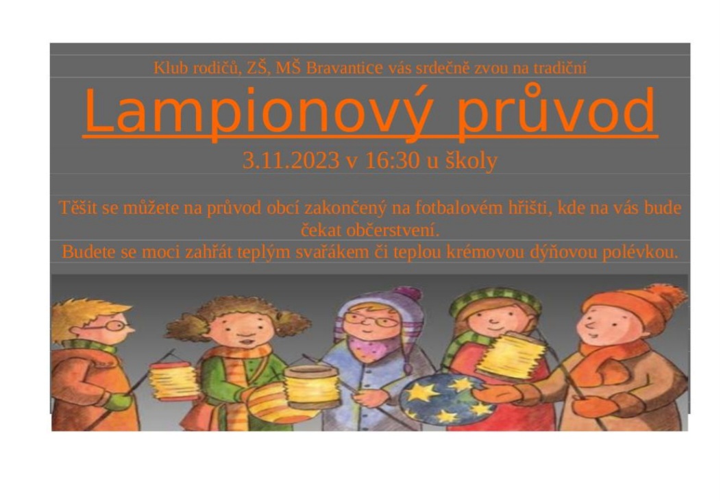 Klub rodičů, ZŠ a MŠ Bravantice Vás srdečně zvou na již tradiční Lampiónový průvod.