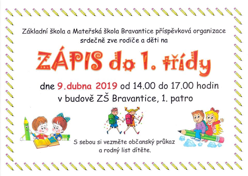 Dne 9. dubna 2019 od 14:00 do 17:00 hodin v budově ZŠ Bravantice, 1. patro