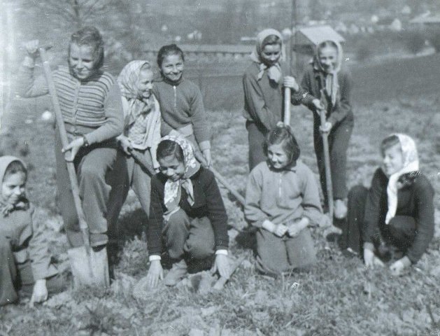 sázení stromků dětmi ZŠ 1967