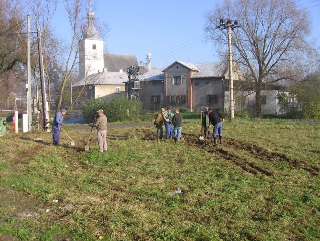 brigáda našich občanů na vybudování nové kanalizace v obci v roce 1973